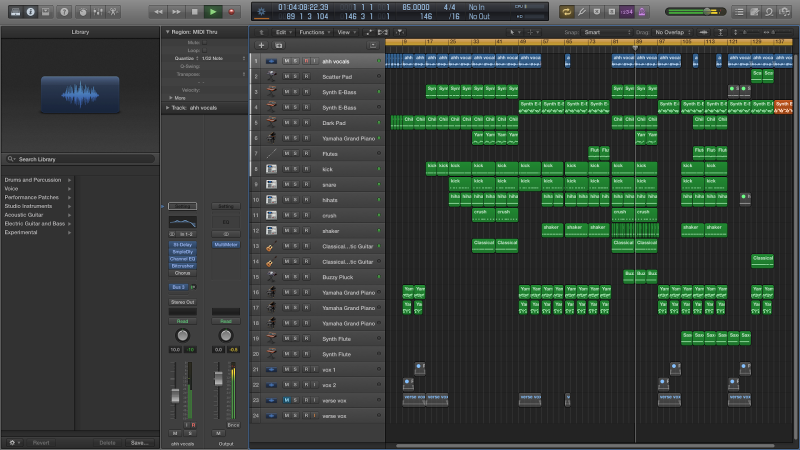 For my first song, I have a sample on it playing through the chorus. the instruments I'm going to use to replace the midi to audio are: